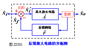 反馈放大电路均可用图Z0301所示方框图来表示。它表明,反馈放大电路是由基本放大电路和反馈网路构成的一个闭环系统,故常称反馈放大电路为闭环放大电路,相应地称未引入反馈的放大电路为开环放大电路。图中比较与取样都是通过反馈网络与基本放大电路的特定连接方式实现的。
