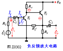 例题 放大电路如图Z0302所示。试说明该电路中有无反馈,如果有反馈,是正反馈还是负反馈。