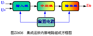 集成运算放大电路一般由输入级、中间级、输出级和偏置电路组成,如图Z0606 所示。为了对集成运放内部电路有一个基本了解,本知识点以典型的集成运算放大电路F007为例,介绍集成运算放大电路的组成、工作原理及主要参数。