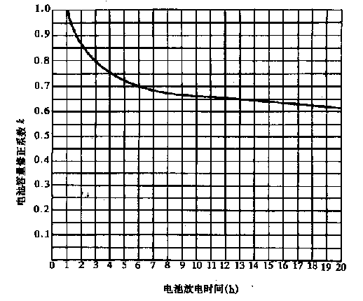 还有一种情况,即只有1h放电数据时,如何确定1h以上的电池容量,下图给出了修正曲线,可供参考。根据该修正曲线可得出1h以上电池容量的近似值。