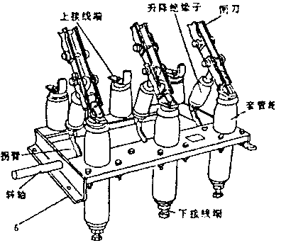隔离开关无特殊的灭弧装置,因此它的接通与切断不允许在有负荷电流的情况下进行,否则断开隔离开关的电弧会烧毁设备,甚至造成短路故障。所以须要接通或断开隔离开关时,应先将高压电路中断路器分断之后才能进行,典型GN8型高压隔离开关如图1-2-9所示。