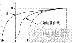 从饱和状态去除磁场后,磁芯继续被反向磁场磁化,直至磁通密度减为零,此时的磁场强称为矫顽力。见图1。