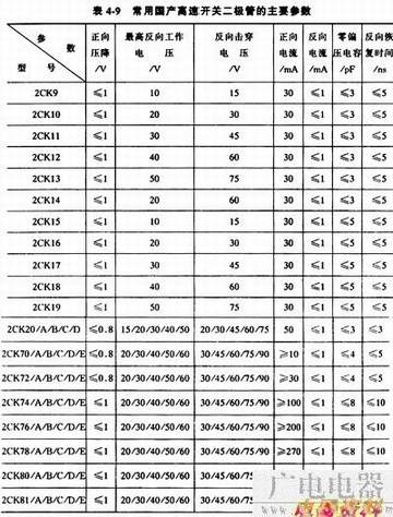 常用的国产高速开关二极管有2CK系列,见表4-9。