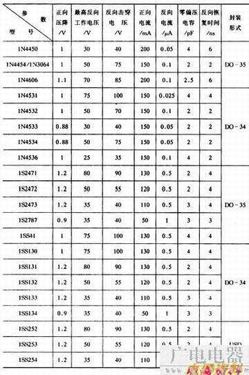 常用的低功耗开关二极管有RLS系列(表面封装)和1SS系列(有引线塑封),表4-13为其主要参数。