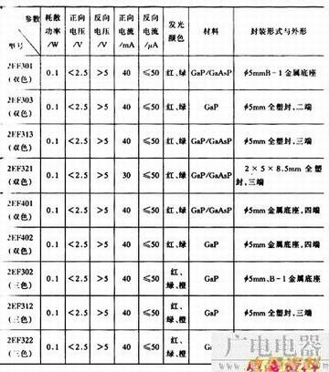 常用的双色发光二极管有2EF系列和TB系列,常用的三色发光二极管有2EF302、2EF312、2EF322等型号,见表4-31。