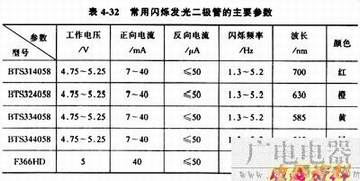 表4-32是几种常用闪烁发光二极管的主要参数。
