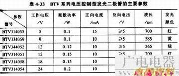 表4-33为BTV系列电压控制型发光二极管的主要参数。
