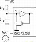 RC振荡器是在OSC1/CLKIN引脚接一串联,如图3所示。厂家推荐Rext取值在5kΩ~100kΩ之间。当Rext小于22kΩ时,振荡器的工作可能会变得不稳定或停振;当Rext取值大于1MΩ时,振荡器易受到干扰。RC振荡器产生的振荡fosc,经内部4分频后从OSC2/CLKOUT输出fosc/4振荡信号,此信号可以用作测试或作其它逻辑电路的同步信号。