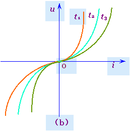 1.非线性定常电阻元件 它不服从欧姆定律,且一般不具有双向性。如图1- 3-6(a)所示。
