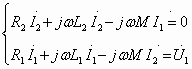 我们可以把被测导体上形成的电涡等效成一个短路环,这样就可得到如图4.3.2的等效电路。图中R1、L1为传感器线圈的和。短路环可以认为是一匝短路线圈,其为R2、为L2。线圈与导体间存在一个M,它随线圈与导体间距的减小而增大。