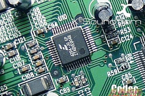 在集成AC'97声卡的主板上,你也可以看到一块或者几块这样封装的芯片。AC'97 Codec的引脚定义是相同的,声卡设计商可以通过配置不同的CODEC来改变声卡的档次,例如著名的Live!系列,最大的区别其实就是CODEC的不同。引脚定义的相同可以大幅降低设计成本。另外,AC'97 Codec还可以带一些音效处理功能。