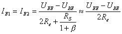 | (1)静态工作点 静态时,输入短路,由于流过Re的电流为IE1和IE2之和,且电路对称,IE1=IE2, 因此: ![]() | |