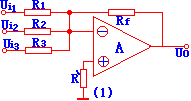 | 它的电路图如图(1)所示:(输入端的个数可根据需要进行调整)其中电阻R'为: | |