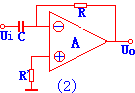 | (2)微分电路 微分是积分的逆运算,它的输出电压与输入电压呈微分关系。电路图如图(2)所示: |