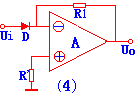 | (2)指数运算电路 指数运算电路是对数运算的逆运算,将指数运算电路的二极管(三级管)与电阻R对换即可。电路图如(4)所示 |