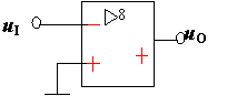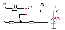 - 当uI<0时,运算放大器输出为正的最大值,即高电平电压UOH=+U0max