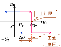 由于从同相端输入且只有一个门限,通常把比较器输出电平发生跳变时的输入电压称为门限电压UT?,可见该电路的门限电压为UT= UREF