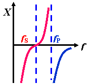 - 随着频率的增加,Cq的容抗减小,而Lq的逐渐增大,当信号频率f=fs时,Cq和Lq发生串联谐振,此时晶体的电抗为零;(