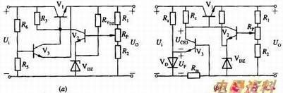 上述电路虽然对输出电压具有稳压作用,但此电路控制灵敏度不高,稳压性能不理想。