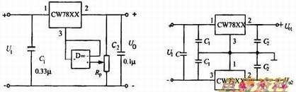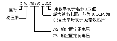 国产三端固定式集成稳压器有CW78XX系列(正电压输出)和CW79XX系列(负电压输出),其输出电压有5V、6V、8V、9V、12V、15V、18V、24V,最大输出电流有0.1A、0.5A、1A、1.5A、2.0A等。