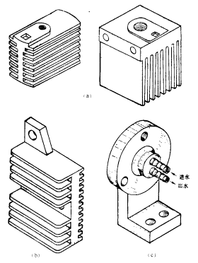 (a)螺旋式散热器 (b) 平板式风冷散热器 (c)平板式水冷散热器