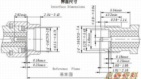 特性: 50Ω工作:软电缆 0~12.4G半硬/半柔电缆 0~18GHz接触:内导体≤3.0mΩ 外导体≤2.0mΩ驻波比:软电缆:≤1.15+0.02f 半硬/半柔电缆:≤1.10+0.01f连接器耐久性:500次