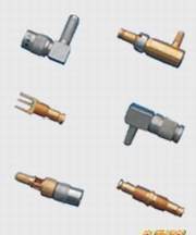 中心接触件:插针---锡磷青铜,镀金插孔---铍青铜,镀金壳体和其它金属零件:黄铜,镀金或镀镍 绝缘体:聚四氟乙烯 线夹:黄铜,镀镍 密封圈:硅橡胶