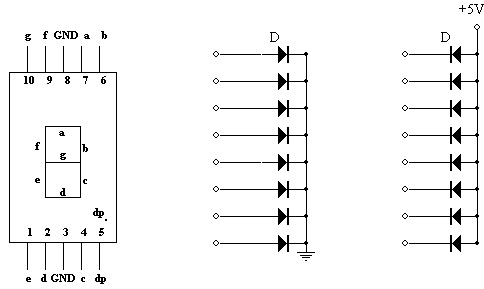 共阳极数码管的8个发光二极管的阳极(二极管正端)连接在一起,通常,公共阳极接高电平(一般接),其它管脚接段驱动电路输出端。当某段驱动电路的输出端为低电平时,则该端所连接的字段导通并点亮,根据发光字段的不同组合可显示出各种数字或字符。此时,要求段驱动电路能吸收额定的段导通,还需根据外接及额定段导通电流来确定相应的限流。