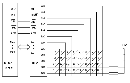 图7.6 8155扩展I/O口组成的矩阵键盘