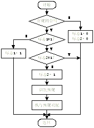 图中,标志1和标志2是在单片机内部RAM的位寻址区设置的两个标志位,标志1为去抖动标志位,标志2为识别完按键的标志位。初始化时将这两个标志位设置为0,执行中断服务程序时,首先判别有无键闭合,若无键闭合,将标志1和标志2置0后返回;若有键闭合,先检查标志1,当标志1为0时,说明还未进行去抖动处理,此时置位标志1,并中断返回。由于中断返回后要经过10ms后才会再次中断,相当于延时了10ms,因此,程序无须再延时。下次中断时,因标志1为1,CPU再检查标志2,如标志2为0说明还未进行按键的识别处理,这时,CPU先置位标志2,然后进行按键识别处理,再执行相应的按键功能子程序,最后,中断返回。如标志2已经为1,则说明此次按键已做过识别处理,只是还未释放按键,当按键释放后,在下一次中断服务程序中,标志1和标志2又重新置0,等待下一次按键。