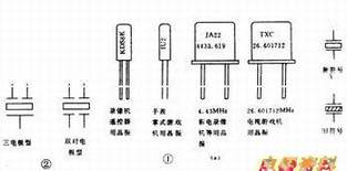 石英谐振器按引出电极情况来分有双电极型、三电极型和双对电极型几种。图l为双电极型石英谐振器的外形,尽管它们的体积有大有小、固有振荡频率有高有低,但在图中均用图1(b)符号表示。三电极型和双对电极型石英谐振器的符号见图2。