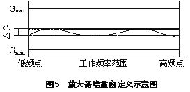 指在一定温度下,在整个工作频率范围内,放大器增益变化的范围。增益平坦度由下式表示(见图1):