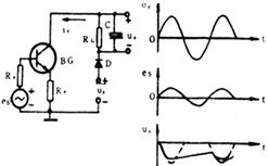 | 当es与Ua均为正半波时,使BG及D均处于导通状态,则集电极电流iC流过负载RL,输出电压UO为负半波,如UO波形图的虚线所示,再经C的平滑作用,得到实线的直流电压。由于BG的放大作用,所以供给负载RL的功率甚大于基极输入功率,并由解调电压Ua供经负载能量。在上图中如果输入es与Ua即es为上负下正,而Ua却为上正下负时,虽然D仍为正偏置,但BG截止,故ic为零,输出也为零。因此,输出信号对输入信号的相位有敏感而且放大作用,故称为相敏放大器。 |
