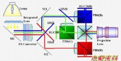 由于LCOS技术仍在起步阶段,目前并无标准制程,所以有多家厂商开发出不同的LCOS光学引擎架构,比较具有代表性的厂商有:IBM、ColorQuad、Philip、Hologram、…,而这十余种技术各有优劣。在这些不同的技术中,可概分为三片式及单片式二大类,说明如下: