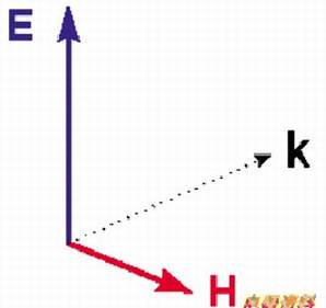 3.1873年,马克斯威尔发现光波是电磁波,其中它的电波和磁波是相依相存不能分开的,电场(E)、磁场(H)与电磁波进行的方向(k)这三者是呈相互垂直的关系。