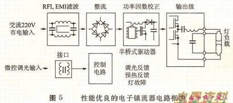 一个性能优良的高频交流电子镇流器电路的工作原理框图如图5所示。