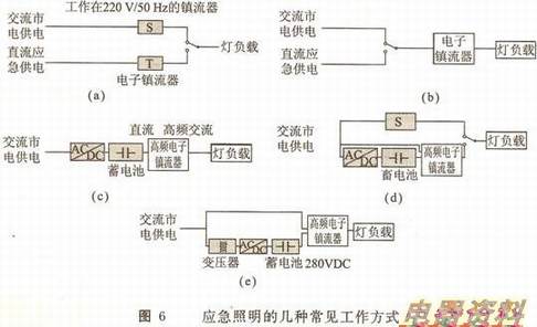 ·应急系统,例如交流供电骤然断电时,利用供电的照明,工作原理框图分别如图6(a)~(e)所示。