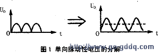 但根据波形分解原理可知,这一电压可以分解一个直流电压和一组不同的交流电压,如图1(b)所示。在图1(b)中,虚线部分是单向脉动性直流电压U.