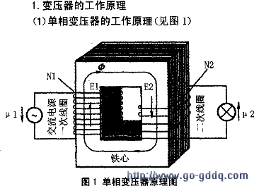 当一次绕组接至交流后,变化着的交流电便在铁心中产生作相应变化的交变(称主磁通中),通过铁心中的主磁通这个桥梁,传递到二次绕组,使灯泡点亮。由于该磁通通过原、副绕组,因此,每匝线圈中产生的感应大小相等、方向相同。