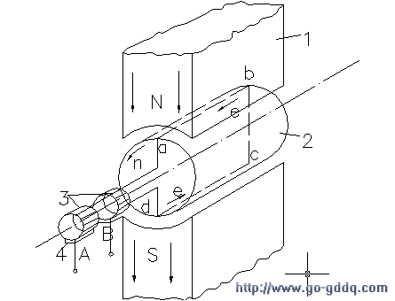 1—磁极;2—电枢;3—滑环;4—电刷