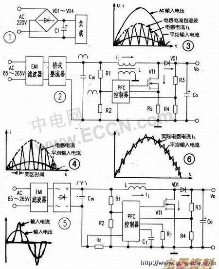 由于AC输入电流谐波会影响同一供电网络中的其他设备,对电网造成污染,成为一种“电力公害”.同时,它所引起的功率因数下降不符合能效标准和新能源法规要求。因此,很有必要对畸变的AC输入电流波形进行整形,滤除电流谐波,以产生正弦波形,且与AC输入正弦波电压同。这就叫作功率因数校正(PFC)。日本和德国等国又常将其称为谐波滤波,其实与PFC是同~含义,而且似乎更加确切。