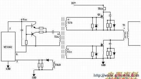 T2为驱动变压器,T1为开关变压器,TR1为电流环。