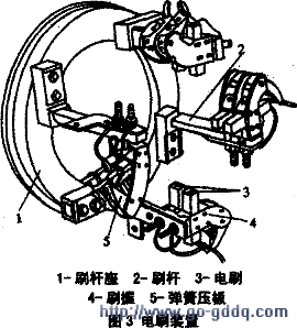 (1)电刷装置:如图3所示。换向器通过电刷与外相连,使电流流入或流出电枢绕组。