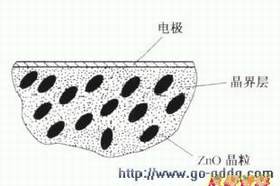 下图所示的是氧化锌压敏电阻的微观结构,它包括氧化锌(ZnO) 晶粒以及晶粒周围的晶界层。氧化锌晶粒的很低,而晶界层的电阻率很高,相邻两个晶粒之间便形成了一个压敏单元每个单元的大约为3.5V 。在压敏电阻器内许许多多的这种单元进行串联和并联便构成了压敏电阻器的基体。串联的单元越多,其的电压就越高;基体的横截面积越大,其通流容量也越大。
