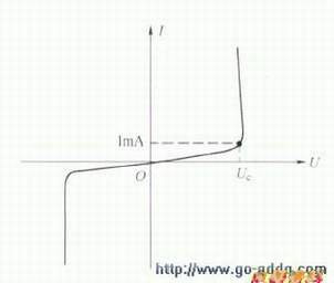 下图给出了器的伏安特性曲线,可以看出,它是一条对称的非线性曲线当外加电压较低时,流过的很小,器呈高阻状态;当外加电压达到或超过压敏电压Uc时,压敏器的阻值急剧下降并迅速导通,其工作电流会增加几个数量级,从而有效地保护了中的其他元件不会肉过压而损坏。