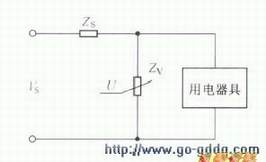从上式可见, Zv在瞬间流过很大电流时,瞬间过电压大部分降落在Zs 上,而用电被保护电器得到的电压在其耐压之下,因而能起到保护作用。