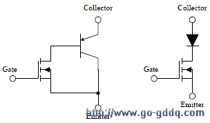 一个N沟道IGBT基本上是一个N沟道功率MOSFET构建在p型衬底上,图1为通常的IGBT横截面。(PT IGBT有一个额外的N+层,并将加以解释。)因此,使用IGBT和使用功率MOSFET非常相似。从发射极到栅极之间加一个正的电压,使得电子从Body流向栅极。 如果门-发射极电压达到或超过所谓的阈值电压,足够多的电子流向栅极跨过Body形成一个导电通道,允许电流从集电极流向发射极。(准确地说,它使得电子从发射极流向集电极。)这种电子流吸引阳离子或空穴从p型衬底经漂移区到达集电极。如图2所示,为IGBT的简化等效图。