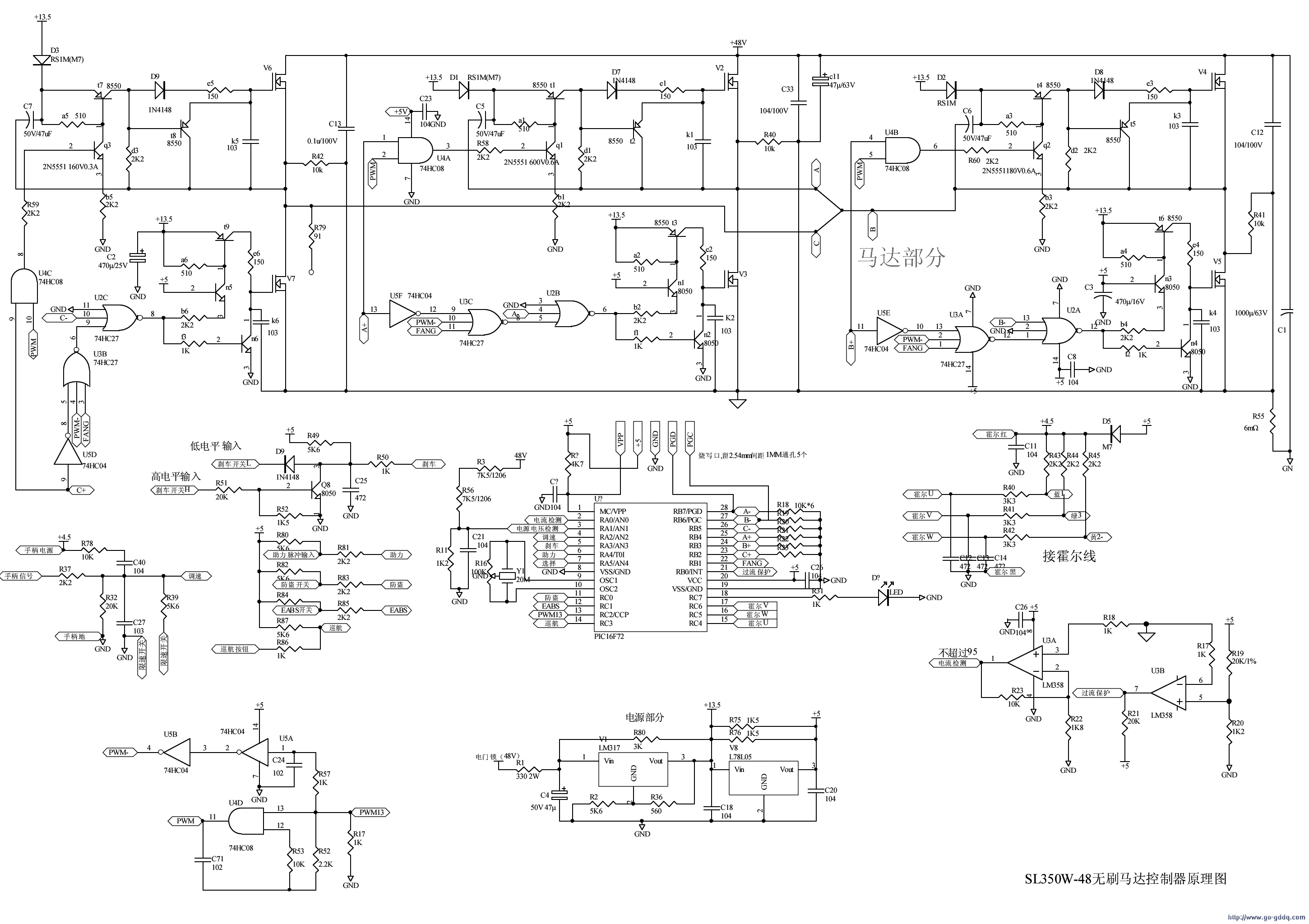 今以应用最广泛的以P16F72为智能控制中心,350W的整机电路为例,整机电路如图1