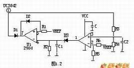 2、短路保护电路通常有两种,下图是小功率短路保护电路,其原理简述如下: 当输出电路短路,输出消失,光耦OT1不导通,UC3842①脚电压上升至5V左右,