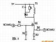 输出电路短路或电流过大,TR1次级线圈感 应的电压就越高,当UC3842③脚超过1伏,UC3842 停止工作,周而复始,当短路或过载消失,电路自行恢复。